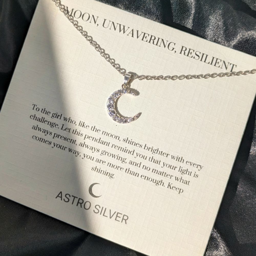 To the girl who, like the moon, shines brighter with every challenge. Let this pendant remind you that your light is always present, always growing, and no matter what comes your way, you are more than enough. Keep Shining