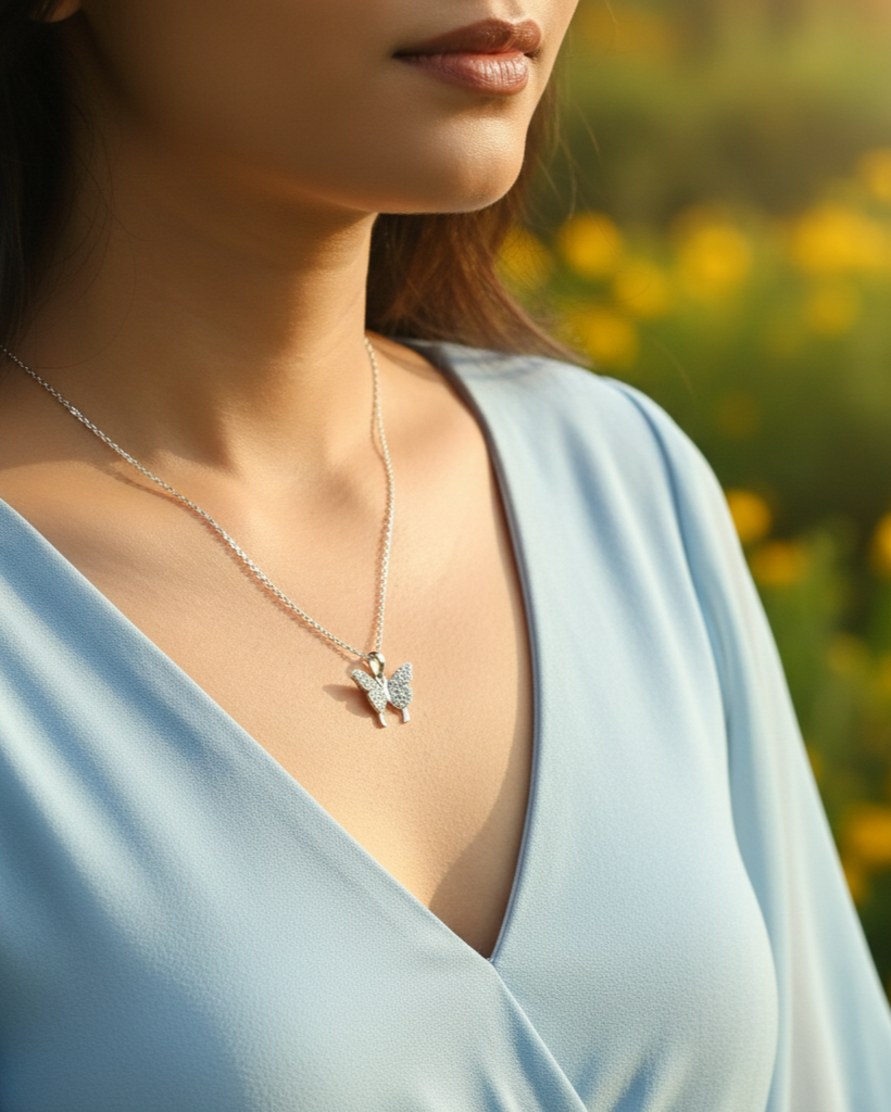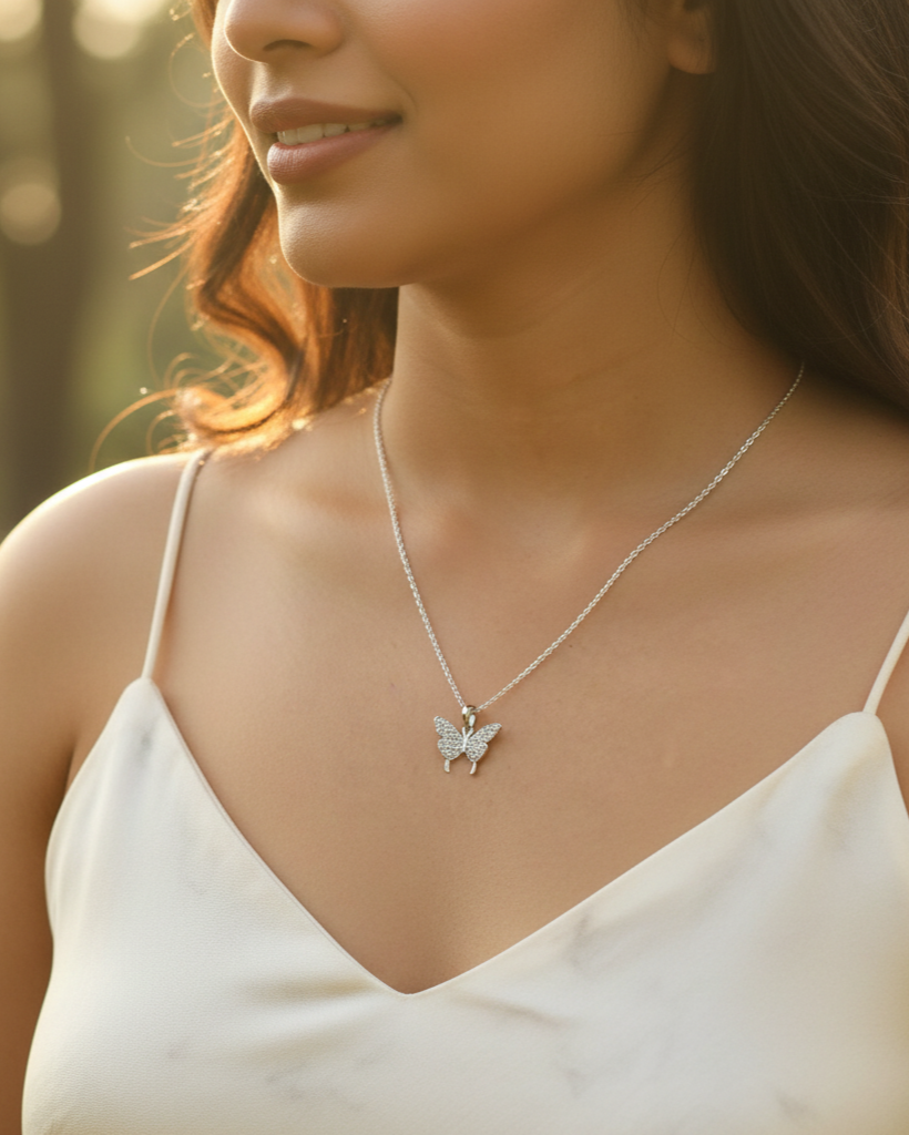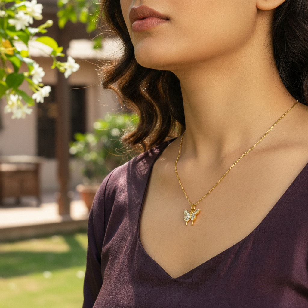 As butterflies flutter through life, ever-changing and ever- evolving, so too do you possess the remarkable ability to adapt and grow, Wear this pendant as a reminder to embrace the journey and spread your wings with confidence.
